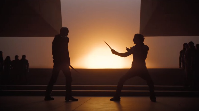 And in case any fans are disappointed that the trailer would end on such a seemingly big reveal, remember that this is "Dune" and absolutely nothing is resolved as neatly and orderly as it might in other stories. Needless to say, there's no telling exactly how Villeneuve will adapt the events of the second half of Herbert's book or how many bigger developments in the sequel are being kept under wraps. Either way, avid fans will recognize the menacing sentence that the now blue-eyed Paul utters before his fight: "May thy knife chip and shatter." This, it seems, could be the payoff to the "Long live the fighters" tagline of the film.