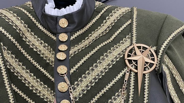 "I chose a green fabric for his doublet, which was a subtle nod to the green-wrapped tunic," Croft told me in an interview about her work on the show. "He also wore a pin that represented that he was the king's advisor and First Hand. This star motif is actually the Starfleet command symbol just turned upside down."