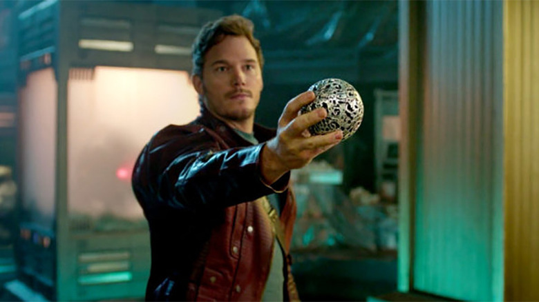 In the original "Guardians of the Galaxy," Peter Quill (aka Star-Lord, the legendary outlaw) finds himself in the middle of MacGuffin mayhem. On the planet Morag, he's trying to retrieve a mysterious orb that he plans to sell to an unknown buyer through a business broker. But he's not the only one trying to get the orb. Ronan the Accuser (Lee Pace) is also after the orb, and he's sent henchmen after it, including the deadly Gamora (Zoe Saldana), whose father Thanos just so happens to be pulling Ronan's strings. It's clear the orb is important, which makes one of Chris Pratt's brilliant improv choices all the more hilarious.