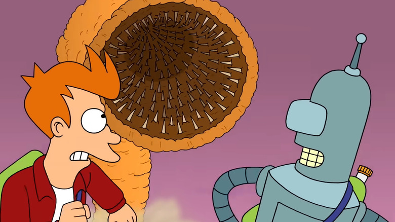 "Futurama" season 11 is filled to the brim with the series' quick background jokes and seemingly off-the-cuff commentary from its characters, and these little chunks of comedy are just as great as they've always been. The series' sentimentality, which has grown over the years, also still works, though die-hard fans of the original Fox run might find some of it a bit too sweet for their liking. There's really just one major thing that holds the latest season of "Futurama" from being as good as it could be, and that's the show leaning into more topical humor. The original Fox run occasionally had topical episodes, and the Comedy Central runs had significantly more of them, but it just feels like too much in season 11. The season opener, "The Impossible Stream," follows Fry as he tries to stream everything ever made, a truly dangerous feat. There are a bunch of jokes at Hulu's expense and we're supposed to feel like the show is still a little punk rock, but pretty much every streaming service has a show that pokes fun at them directly (Netflix has the "Joan is Awful" episode of "Black Mirror," Hulu already got roasted pretty hard on "Reboot," etc.).