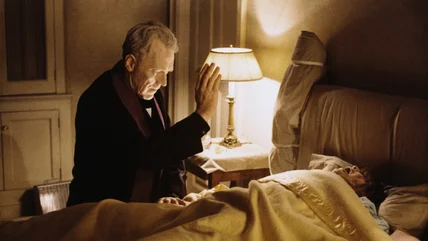 Things get worse and worse — Regan grows violent, her voice changes, she harms herself, scars appear on her body, and the furniture starts moving around on its own. An unthinkable answer presents itself: Regan isn't sick — she's possessed! Enter a kindly but troubled priest, Father Karras (Jason Miller). Like Chris, Karras is skeptical at first — until it becomes abundantly clear that Regan really is possessed by a demon, and an exorcism needs to be performed to save her life. Eventually, another priest, the elder Father Lankester Merrin (Max von Sydow) will be called in to help perform an exorcism, a ritual that can be dangerous to everyone involved if it goes wrong. Thus the stage is set for the ultimate battle between good and evil.