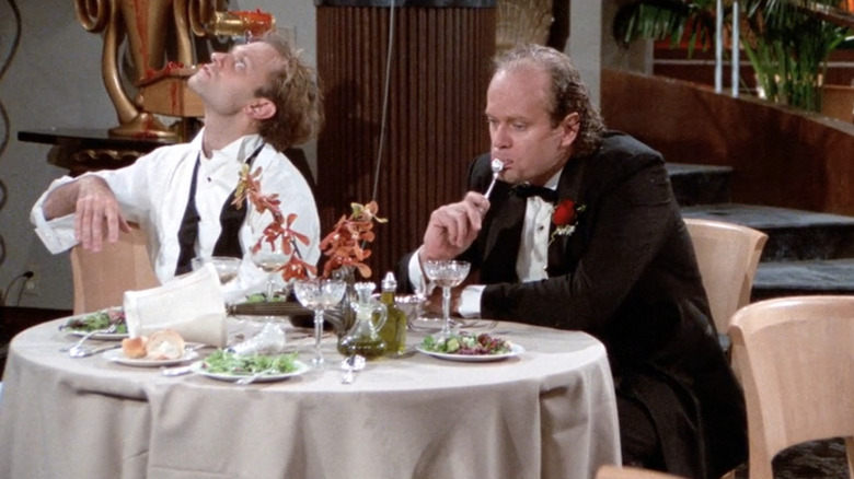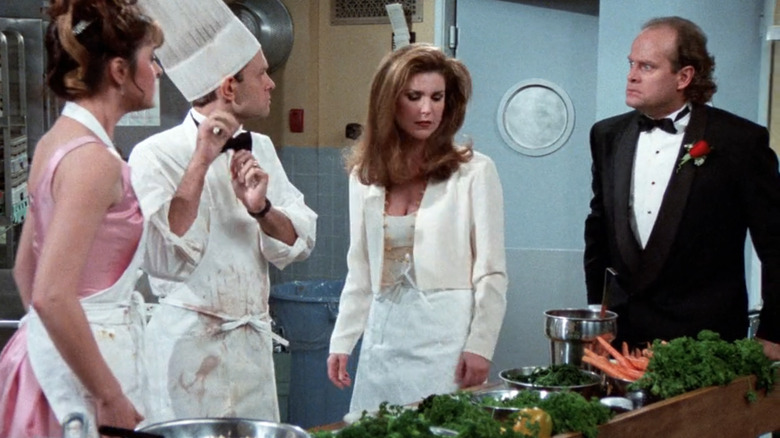 That's a reference to season 2 episode 23 of "Frasier" titled "The Innkeepers," in which the lovably pompous protagonist and his brother buy Seattle's oldest restaurant and turn it into an unbearably pretentious French bistro, despite not having any experience as restauranteurs. The episode achieves "I Love Lucy" chocolate factory-level hijinks, goofs, and chaos, with Daphne violently killing eels, cherries jubilee exploding in Roz's face, and the sprinkler system dousing the mayor of Seattle. It's classic "Frasier" fare, mixing highbrow humor with slapstick shenanigans and a dose of good old heart. Sadly, despite its best efforts, that's a new formula the revival show is yet to perfect.