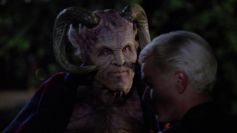 The most memorable of these episodes has to be season 4's "A New Man," in which Ethan Rayne, a black-magic-worshipping bad boy (now bad man) from Giles' past takes advantage of the Watcher's newfound boredom and restlessness, as the Scooby Gang have all but outgrown Giles' help and Sunnydale High has burned down. Ethan lulls Giles into a false sense of camaraderie and, while he's in an idle, drunken stupor, transforms him into a leathery, horned Fyarl demon. Absolute chaos ensues.