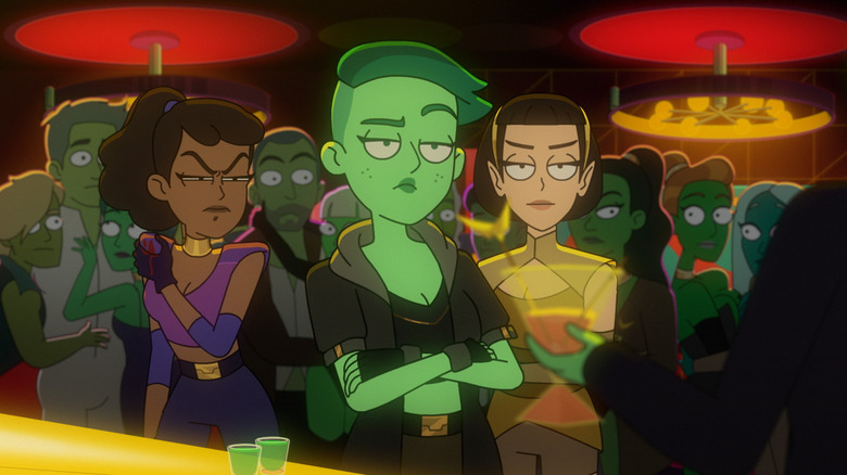 In "Parth Ferengi's Heart Place," we get to see how things have been going on Ferenginar, where "Deep Space Nine" fan-favorite characters Rom and Leeta have taken over as the planet's more progressive rulers, who are considering Federation membership. Meanwhile, in "Something Borrowed, Something Green," we took a trip to the Orion homeworld, where an alien race that goes all the way back to the original pilot of "Star Trek" starring Captain Pike (Jeffrey Hunter) made its debut. That's right — the Orions have been a part of the "Star Trek" franchise since literally the beginning, and fans have never, ever gotten a peek at the surface of their planet, much less so much detail about how their society functions (or, more specifically, how it kinda doesn't).