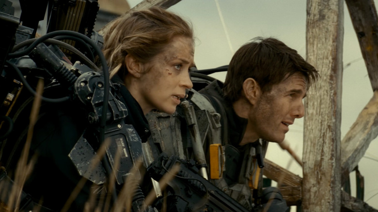 Midway through "Edge of Tomorrow," Liman shifts from Cage's perspective and allows us to see his plight from Rita's point of view. The pair arrive at a barn, and she discovers that he knows intimate details about her. Eventually, he explains that she dies in every scenario they've enacted, and this is his way of trying to protect her. Enraged, Rita hops in a helicopter and attempts to fly away, but a nearby Mimic emerges, attacks, and causes the vehicle to crash into the barn. Cage leaps out of the way just in time to prevent injury, grabs a gun, and blasts the alien to bits.