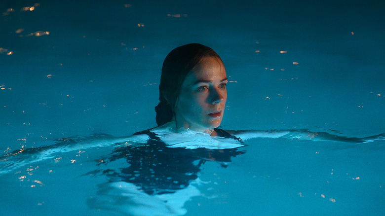 The horror genre has no shortage of films about haunted or possessed items. And I'm not just talking about the usual haunted house or haunted doll fare, either. Films like "Slaxx" boast haunted, killer pants, there's the possessed sofa of "Killer Sofa," and no one could forget "Death Bed: The Bed That Eats." Blumhouse's newest horror flick, "Night Swim," asks the audience to take a dip into a new haunted object: a backyard swimming pool. Based on his short film of the same name, Bryce McGuire's directorial feature debut centers on the Waller family, after former pro-baseball player Ray (Wyatt Russell) and his wife Eve (Kerry Condon) move their family to Minnesota as Ray learns to adjust to life following a multiple sclerosis diagnosis. With hydrotherapy highly encouraged, the Waller family buys a house with a swimming pool — one that, unbeknownst to them, has a deep, dark history.