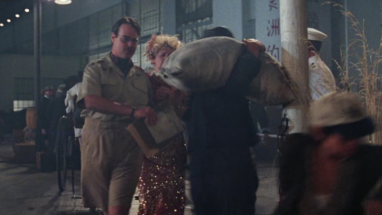 Here's a cameo you may have missed: Dan Aykroyd plays Weber, the mustachioed British officer who secures Indy, Willie, and Shorty spots on a plane flying out of Shanghai (unfortunately, it's owned by Lao Che).