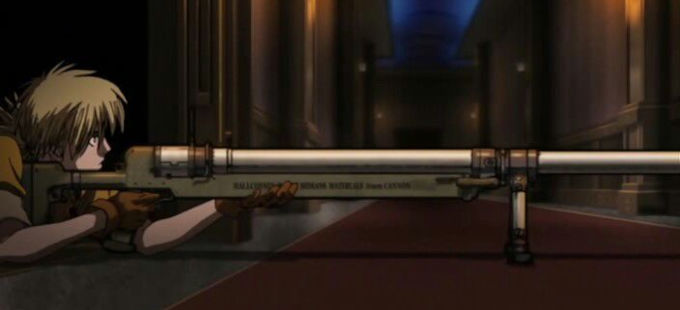 Seras Victoria is like Lucy Westenra in "Dracula," a young English girl made a vampire by Alucard (though Alucard did so to save her life, not out of lust like he did with Lucy). Seras, lacking much choice, joins her maker hunting vampires. In "Hellsing" chapter 7 (adapted in episode 2 of the anime, "Hellsing Ultimate"), she's gifted a six-foot-long cannon that's designed for destroying tanks with depleted uranium and/or explosive shells. You need heavy firepower to kill vampires, and Seras' new super strength means she can carry the gun even though it's taller than her.