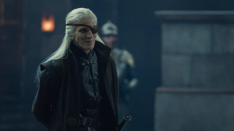 Alys Rivers' real claim to fame among the "Fire & Blood" fandom is her mysterious relationship with Prince Aemond Targaryen. When Aemond recaptures Harrenhal — which turns out to be surprisingly easy, as Daemon has abandoned it for strategic reasons — one of the first things he does is put the rest of the Strong household to death for surrendering to Daemon so quickly. Aemond chooses to spare Alys' life, however, as he's enchanted by the woman. (With Aemond's odd relationship with the older prostitute in the brothel this season, the show's already foreshadowing this development.)