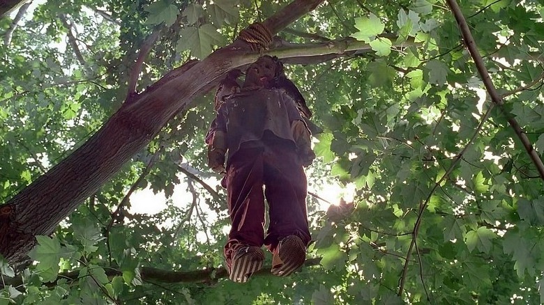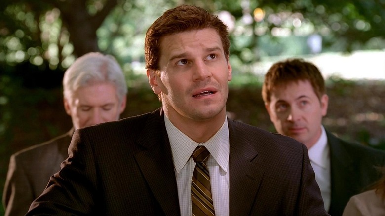 Special effects shenanigans are to be expected on almost any police procedural. After all, these shows often involve unusual crime scene setups, many with some kind of gag involved. With 12 seasons and 246 episodes, the beloved Fox series "Bones" had plenty of time for a special effect to misfire, and in one spectacularly silly case, it caused a bit of a decapitation mishap! Don't worry, no one was hurt, just a little embarrassed. Just before "Bones" started to find its footing with a stellar fourth episode, there was "A Boy in a Tree," following Special Agent Seeley Booth (David Boreanaz) and forensic anthropologist Dr. Temperance "Bones" Brennan (Emily Deschanel) as they investigate the remains of a teenage boy found hanging from a tree at a prestigious private school. The episode itself is decent enough, but behind-the-scenes things were just a little bit more difficult.