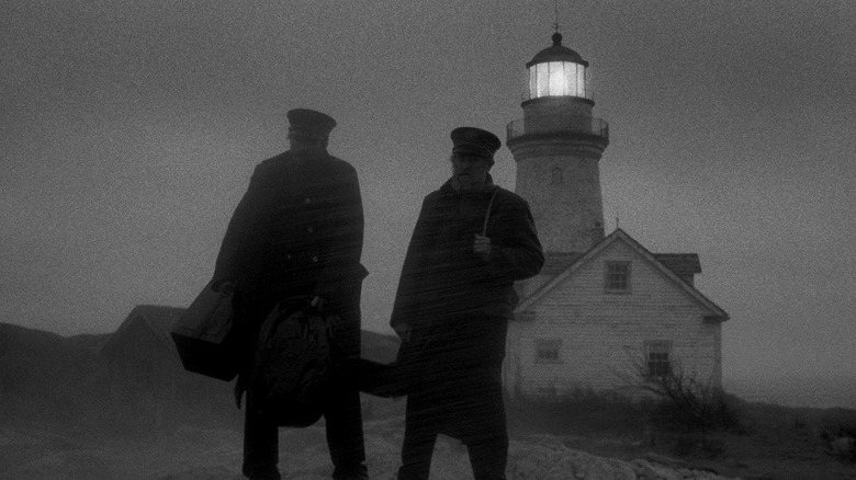 In plain terms, "The Lighthouse" is about two men, an old lighthouse keeper named Thomas Wake (Willem Dafoe) and his new assistant "wickie," a hollow-eyed young man played by Robert Pattinson. It is the 1890s, and they have been tasked with keeping a lighthouse alive, just the two of them, for the entire season. The Pattinson character may be named Ephraim Winslow, but that will eventually be questioned. Ephraim and Wake do not get along. Wake farts a lot and tasks Ephraim with emptying chamber pots and hauling gigantic canisters of kerosene. At night, they both drink and masturbate to fantasies of mermaids. It won't be long before Ephraim is going mad and hallucinating monsters.