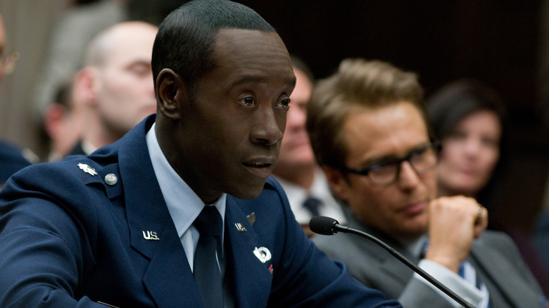 If it worked before, why not try it all over again? That seems to have been the thought process behind getting fans used to the idea of seeing Harrison Ford step into the shoes of Thunderbolt Ross for the first time in the series. Even before Marvel hired Mark Ruffalo to take over for Ed Norton, the studio faced an even more difficult decision in 2010 for "Iron Man 2." The original actor to play Colonel James Rhodes/War Machine in the first "Iron Man," Terrence Howard, infamously parted ways with the franchise over disputes over his pay for the bigger-budgeted sequel. When Don Cheadle was brought on board to put his own spin on the character for the film and beyond, director Jon Favreau and star Robert Downey, Jr. decided to handle the somewhat awkward passing of the torch with a comedic touch.