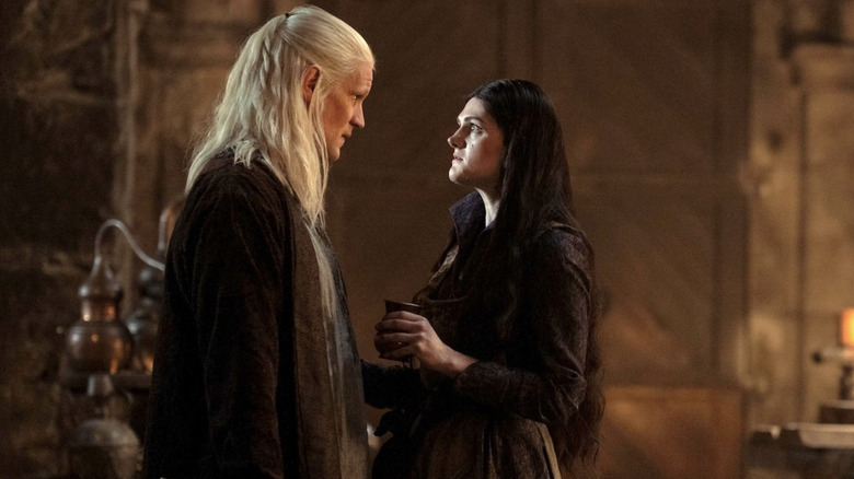 Alys Rivers is aware of what Daemon is hallucinating or dreaming about, which is an ability possessed by the Greenseers. The last of the Greenseers in "Game of Thrones" was the Three-Eyed Raven, a human living among the last of the Children of the Forest beyond the Wall (and a frequent visitor of future king Bran Stark). "House of the Dragon" takes place centuries before "Game of Thrones," so Alys' status, while rare, would not be unheard of. Not to mention, Alys has mentioned being a "barn owl," which she may have meant literally as Greenseries are known skinchangers. Being a Greenseer would explain her connection to Daemon's dreams, for sure, but also explain how she seems to know so much about everything. "What I hear, I hear in the wind," she tells Daemon.