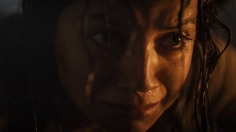 In "Alien: Romulus," a young explorer named Kay is revealed to be early on in her (human) pregnancy, which complicates things when she is captured by a Xenomorph and seriously injured. The team previously acquired a synthesized strain of black goo (the same as shown in "Prometheus"), believed to help regenerate or create life. Thinking it will help her survive, Kay injects herself with the serum, which essentially speed-runs her pregnancy and mutates her unborn baby's DNA with that of the Xenomorphic goo. This woman, who was previously so excited to become a mother, is now horrified at what she's grown. Her childbirth is painfully gory and she screams to her friend Rain Carradine to get it away from her. Rain rips the umbilical cord with her bare hands and removes the egg/pod she's birthed. As it hatches, the Xenomorph acid blood leaks out of the pod, eating through the floor of the ship but not before revealing a humanoid alien baby hybrid.
