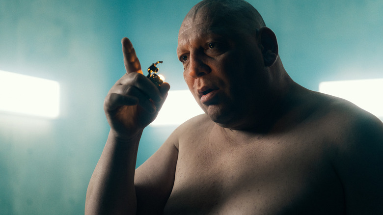 This is a long way to go to tell a story about how people go feral when they starve. The main character of "The Platform 2" is Perempuan (Milena Smit from "Parallel Mothers") a well-to-do artist who has been imprisoned for a crime she wishes to keep secret. Her cellmate is the outsized, hard-fisted Zamiatin (Hovik Keuchkerian) who doesn't seem to care about anything more than getting his daily dose of pizza; he burned down his parents' home when they wouldn't serve him his favorite food. It's worth noting that "perempuan" is the Indonesian word for "woman," making our protagonist a cipher by design. Zamiatin was likely named after Yevgeny Zamyatin, the author of the seminal sci-fi novel "We."