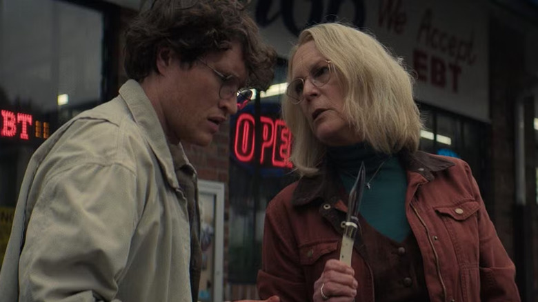 While "Halloween" 2018 felt like it had a pretty definitive ending — Laurie triumphs, Michael burns — "Halloween Kills" leaves the door open for the upcoming third film. After killing seemingly half of Haddonfield, Michael murders Laurie's daughter Karen and the disappears into the night. The implication is clear: the stage has been set for the third and final film, which will bring on the ultimate showdown between Michael Myers and Laurie Strode. But when the third film, "Halloween Ends," finally arrived in 2022, audiences were shocked at the final results, and not in a good way.