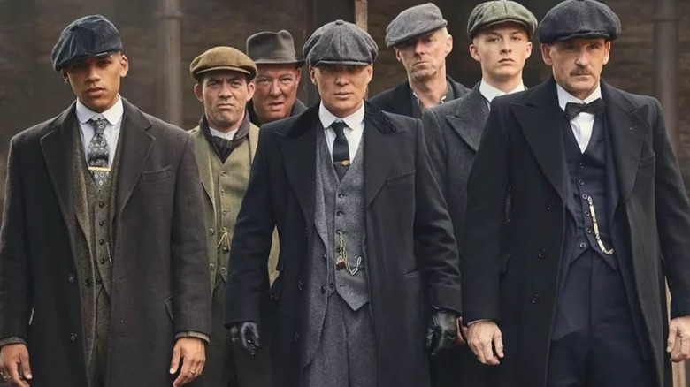 In the real world, the Peaky Blinders formed in the late 1880s and, much like Shelby and his cohorts on the TV show, wore flat caps that became synonymous with the gang itself. Replaceable razor blades, however, wasn't manufactured in Britain until 1908, a mere two years before the end of the Peaky Blinders' reign and the point when they began to lose control of their territory to a rival gang known as the Birmingham Boys. Hats off (no pun intended) to whoever thought up the cool origin story, but it just isn't correct, unfortunately. Instead, the more sensible and simple answer is that it's all to do with the Peaky Blinders' wardrobe and perhaps even how it was worn by them.
