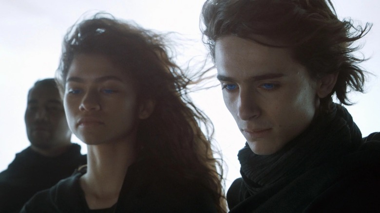 Our first impression of Chani through Paul's eyes — both in Frank Herbert's book "Dune" and Villeneuve's first "Dune" movie — is in the form of dreams. Paul's budding prescience makes him dream of Arrakis even before he sets foot on the desert planet, but Chani is the only Fremen he sees in those dreams. When Paul talks about her in the books, he notices her striking blue eyes (a Fremeni trait due to concentrated spice mixed in the air) and that she refers to him as "Usul." Usul, of course, is the private name Paul would go on to adopt while living with the Fremen in the future, with Chani often using it as an endearment for her lover.