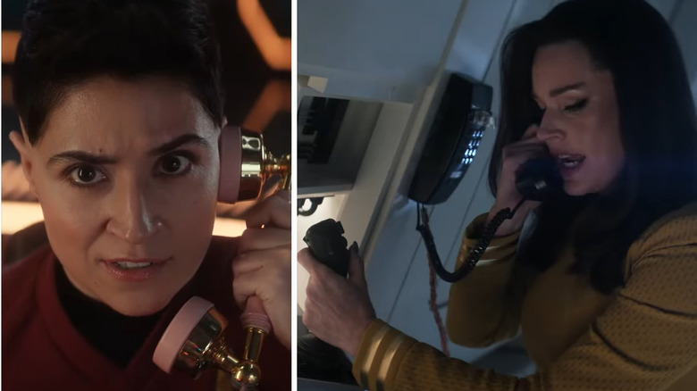 The "Strange New Worlds" preview also presented scenes from an episode wherein the odd-talking Pelia (Carol Kane) will have to, for reasons yet to be revealed, "wire" the Enterprise. The U.S.S. Enterprise is, of course, a miracle of technology that can travel many times faster than the speed of light and teleport people magically through space. There is nothing wired or analog about it. As has been previously established, though, Pelia is a very ancient alien, many thousands of years old, and she's collected a lot of antiques and junk in her travels. It seems that among her knickknacks is a collection of 20th-century-era telephones. Pelia will have to wire the phones into the Enterprise's communications network, and the crew will have to talk on old-school receivers.