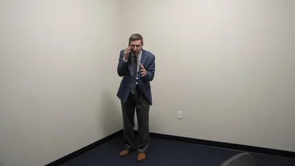 It's the first of many hints that something isn't quite right with Ron's life, a suspicion that only grows as the show progresses. After an unfortunate incident during a work presentation (critics have specifically been asked to not reveal what the incident is), Ron begins to come unglued and unhinged. He found himself embarrassed in front of his coworkers and boss (Lou Diamond Phillips), and embarrassment is the worst possible thing that can happen to a Tim Robinson character. Rather than admit anything resembling defeat, Ron starts looking for someone to blame for his misfortune. In other words, he's trying to find the guy who did this.