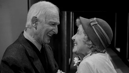 "The Trade-Ins," and it explores the idea of mortality through the perspective of an elderly couple who are still deeply in love. Thanks to a new innovative technology, the couple, John and Marie Holt (Joseph Schildkraut and Alma Platt), are given the opportunity to trade in their bodies for younger, newer models. This opportunity is of particular urgency for John, whose health is failing him and is living with great physical pain. However, they only have enough money for one of them to undergo the procedure. After trying and failing to win enough money for a second "trade-in" body in a poker game, John accepts Marie's urging to go first so that he can be free of his pain.