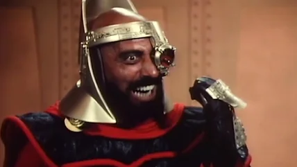The show's villain, Dragos, dreams of galactic conquest, and is about as sophisticated a villain as a Saturday morning kids' show requires. Sid Haig, always committed, gnashes and chews scenery with the best of them. Dragos' minions fly starships by remote, presumably so Jason could shoot them out of the sky without having to kill anyone. Dragos operates out of a rocky Dragonship, his evil lair.