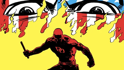 Ironically, that dividing line creates the conditions for a jaw-dropping scene in Miller and Mazzuchelli's "Born Again." In the final issue of the arc, #233, Daredevil is battling nationalistic mercenary Frank "Nuke" Simpson, who Fisk has hired to burn Hell's Kitchen to the ground.
