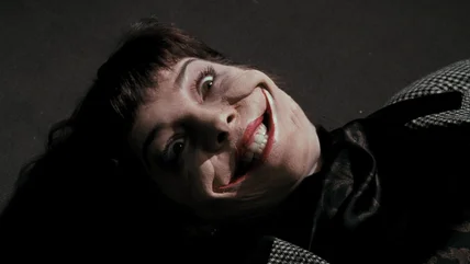 During Becky's collapse, the Joker (Jack Nicholson, who wanted to leave kids scared) pirates the TV signal and enacts a gleefully dark, satirical TV commercial. He explains that the killing laughing fit viewers just witnessed is caused by a chemical poison he invented himself, Smylex. The Joker's pirated announcement also includes images of Candy Walker and Amanda Keeler, still bearing their grim Joker smiles.