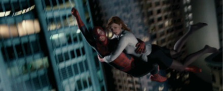 The sequence is basically the same one shown at CES in January. It begins with a romantic talking sequence between Mary Jane and Peter, as they lay ontop of a spider-web. Peter decides to propose to her, and gets a ring from Aunt May. Next we cut to a sequence where Peter is fighting The New Green Goblin (Harry Osbourn) high above the streets of New York City. This is a pretty cool action-packed fight sequence. I imagine this is what the Wachowski Brothers had in mind with the final confrontation between Neo and Agent Smith. But where the Wachowskis failed, Sam Raimi succeeds. This might possibly be the most cinematic superhero action sequence ever captured on film.