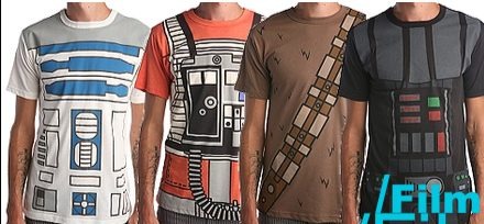 Do you remember those ugly tuxedo-screenprinted t-shirts? Urban Outfitters is now offering a new line of Star Wars-themed t-shirts using the same idea. The geek-o-rific shorts come in four flavors: Darth Vader, Luke Skywalker, Chewbaca and R2D2. I'm sure the $28 price tag has something to do with the Lucasfilm licensing. Correction: Turn s out that Urban Outfitters is just expensive. The t-shirts can be ordered in sizes ranging from Small to XL, but is not yet available in GEEK Size (XXL).