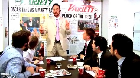 Anyone who has ever clicked over to a Hollywood trade newspaper like Variety has surely been subjected to a bevy of insider slang words, some of which appear to have been created on the spot. FunnyorDie put cameras in a Monday morning Variety writers meeting to find out exactly how this Slanguage is created.