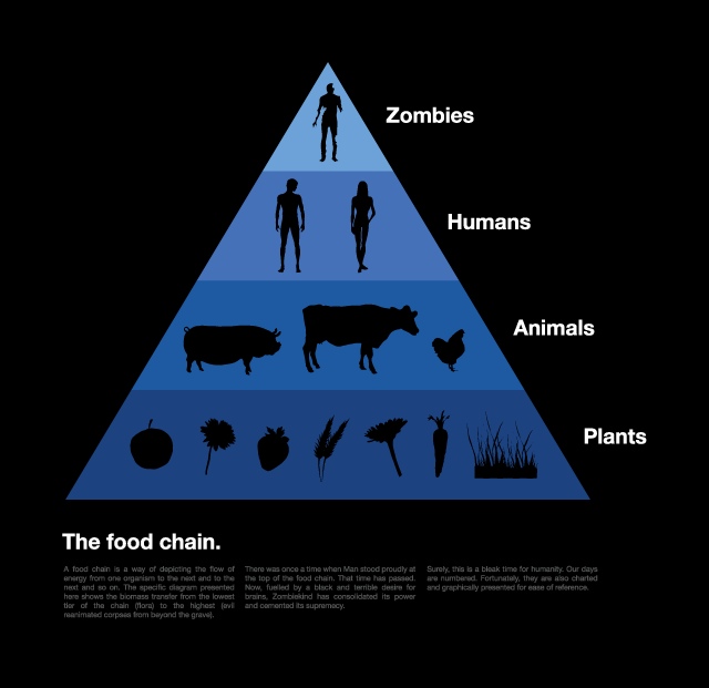 I think I own nearly every one of the t-shirts designed by Moss, except this one — as it sold out in record time. Thankfully, Threadless has decided to reprint his Zombie-themed infographic tee The Food Chain. And what's even better – Threadless is having a Holiday sale, and the normally priced $18 tee is on sale for only $10.Check out the full design, in large resolution, after the jump.