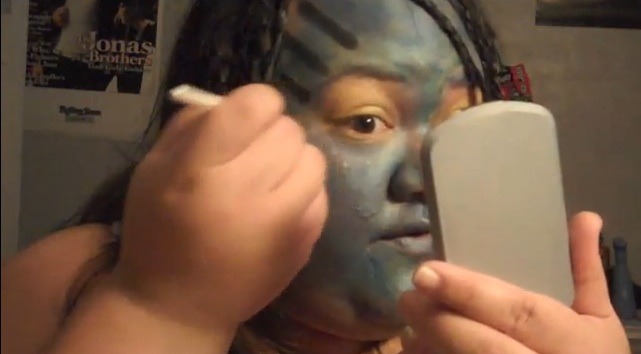 My favourite YouTube upload of the last week or so is at once a basic guide to Halloween-ready Na'vi makeup – and let's face facts, there's going to be a strong tang of Avatar to All Hallow's Eve come October, not to mention every possible cosplay outlet from here until the end of time/until the sucky Avatar prequel trilogy defiles some childhoods/for a year or two [delete as applicable] – and a tour de force in unforced glibness. The skinny legs line even kicked a stale old LOL out of me... and you've gotta love to Jo-Bros poster too.