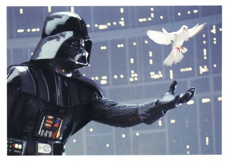 In previous years, we've featured the designs from the many years of LucasFilm Holliday Cards (you can see 30 years worth of cards here, and the 2009 card here). This year's card (via theforce) was designed by Troy Alders and features Darth Vader releasing a dove, which is traditionally seen as a symbol of peace and goodwill toward all.
