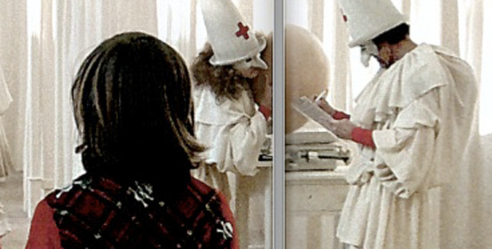More specifically, you might need some Terry Gilliam clowns, as seen in the first images from his new short film The Wholly Family. Don't be afraid: they're Italian Commedia Dell'arte clowns... whose masks and expressions only remind me of the Clockwork Orange home invasion scene... and they seem to be attacking (or, worse, staffing) a hospital. Oh, dear, I'm really not making this any better, am I?