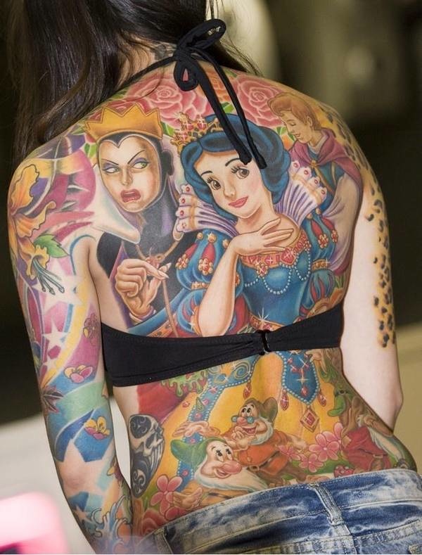 Check out this massive Snow White back tattoo.Lizzy Caplan says a Party Down movie is more likely than an Arrested Development movie.