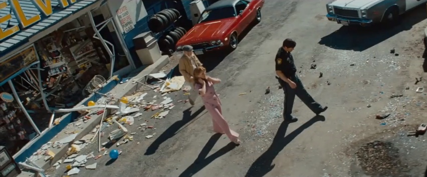 Abrams' longtime composer Michael Giacchino also makes an appearance in the film. My friend Jordan Raup informs me that Giacchino appears as Deputy Crawford, the police officer that Chandler makes fun of for not knowing how the radio works.