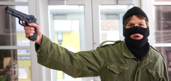 Quick recap: Jesse Eisenberg, looking here like he has some fun playing around with a role that pushes him further than usual, plays a pizza delivery guy coerced by two losers (Danny McBride and Nick Swardson) into robbing a bank for them. How do they manage that? By strapping a bomb to his chest, of course. (True story, kind of.) His friend, played by Aziz Ansari, gets roped into the scheme and the situation spirals pretty quickly out of control.