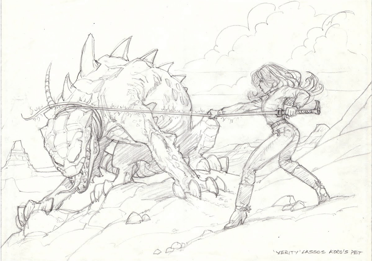 That piece of art above (click to enlarge) is from io9's collection of concept art done by Rolf Mohr for the first draft of Cowboys & Aliens back in 1997. The site has two other pieces of art, and quotes from Steve Oedekerk, who talked about the movie in '97 when he was planning to direct.