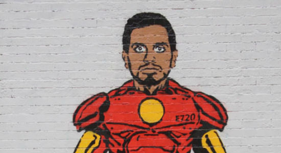 Whaaaaat? Aziz Ansari as Iron Man? Yes, street art for NY Comedy Festival. Thanks to Hanksy (via Vulture).