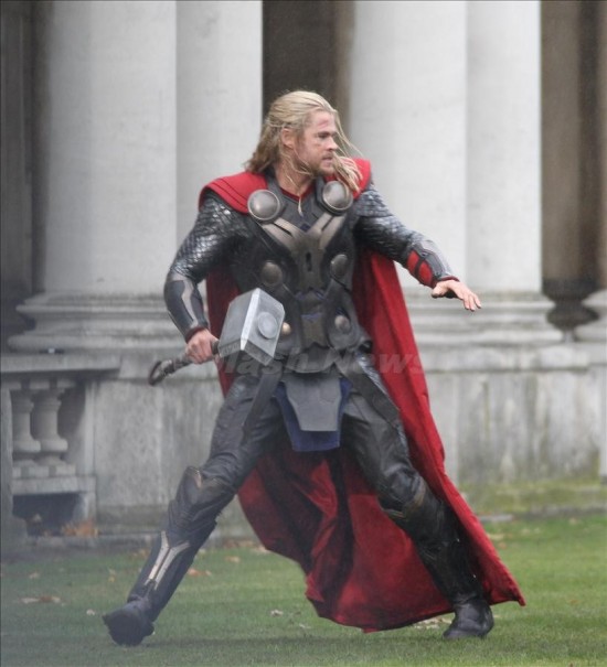 Want to see some new set photos of Chris Hemsworth in Thor: The Dark World? How about a snippet of action footage from The Wolverine? What piece of furniture was duplicated for destruction in Iron Man 3? Have unreleased posters for The Dark Knight Rises now been released? Will Amy Adams talk about a sequel to Man of Steel? Read about all of this and more in today's Superhero Bits.