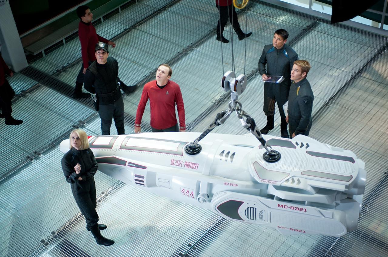 As we hit the last stretch until the film opens up to a general audience, we've got a new international poster promising the end of the Earth, along with high-res versions of photos that have appeared in magazines and online over the past week. The pics show much of the cast — which includes Chris Pine, Zachary Quinto, Zoe Saldana, Karl Urban, John Cho, Bruce Greenwood, Simon Pegg, Anton Yelchin, Benedict Cumberbatch, Alice Eve and Peter Weller — while the poster continues the image of Cumberbatch's villain as a dominating force.