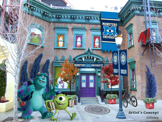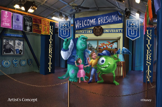 Prospective Monsters University students will get an opportunity to visit part of the campus this summer at Disney parks. The school's Student Union has been recreated in the Backlot of Disney's Hollywood Studios, while visitors to Disney California Adventure will get to stand outside of Mike and Sulley's dorm building. Check out the concept art below.