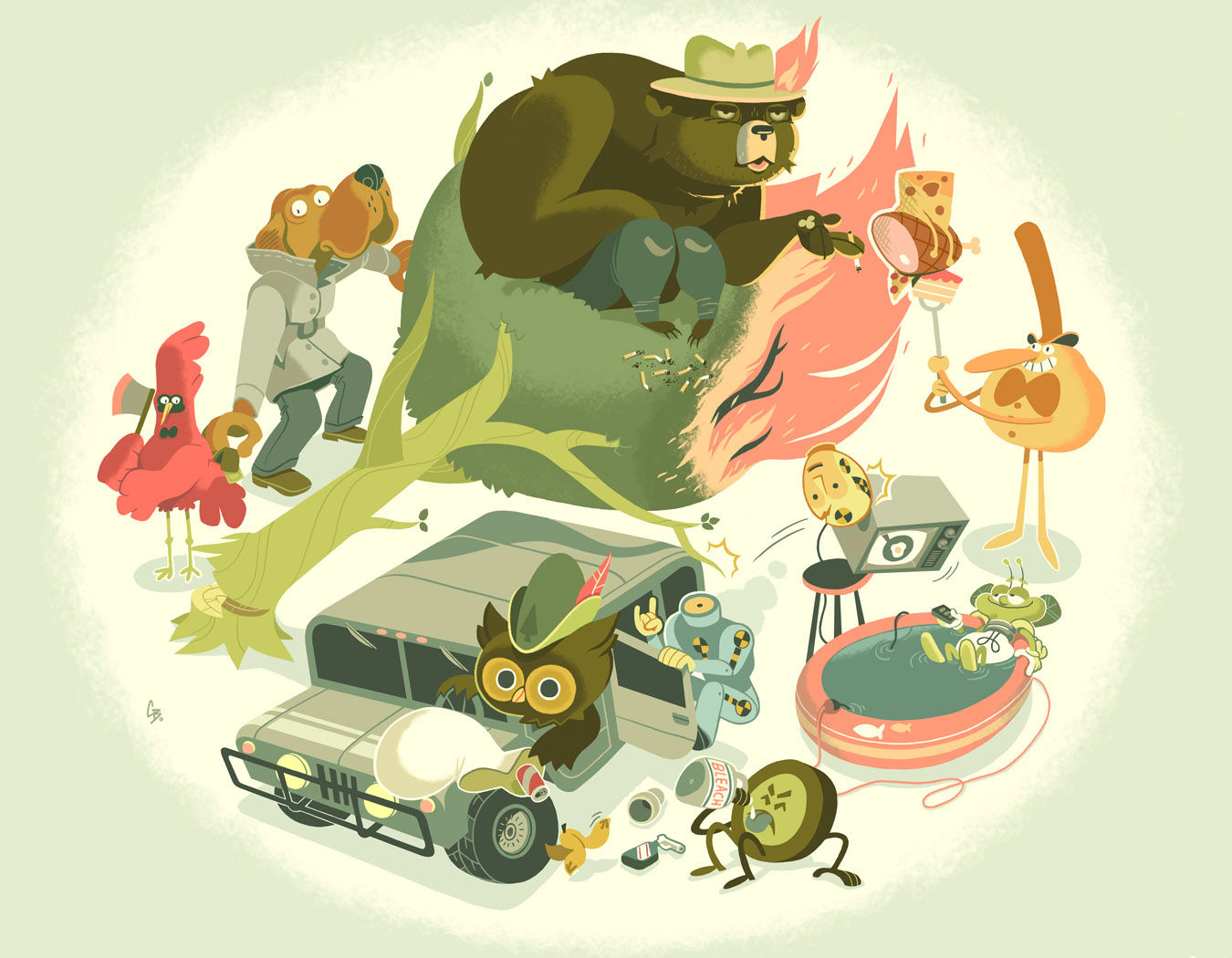 Glen says: "Another piece based on mascots, but this time all the characters are from PSAs. Some of these guys are still around, and some you may recognize if you watched TV a few decades ago. I don't know how many kids actually took their messages to heart, but I liked the idea of seeing them doing exactly what they tell you not to do."