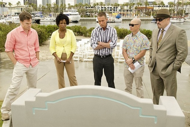 Look how excited Masuka is about the impending return of Dexter. After the jump: