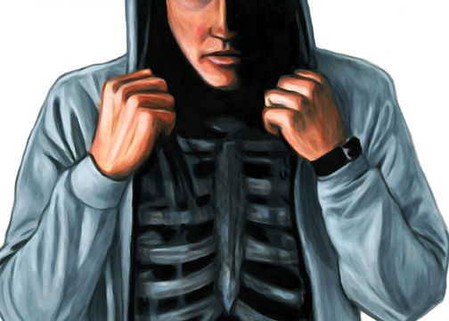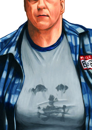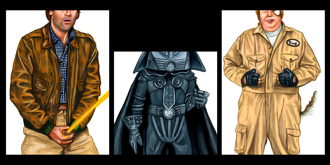 Artist Cuyler Smith has found his own niche. A few months back, the Northern California based artist began doing pieces of famous pop culture figures in a unique, medium shot. It was unique because it goes from the upper thigh or waist to the middle of the face. No eyes or hair. These paintings quickly sold out at Gallery 1988's Judd Apatow and Bad Robot shows and now, Smith has taken the idea and developed it as a full gallery show.