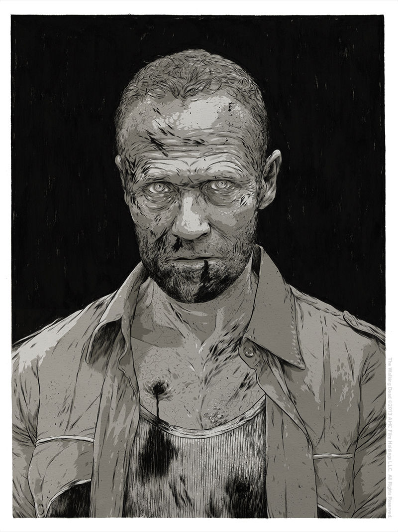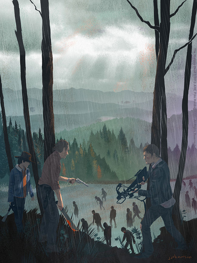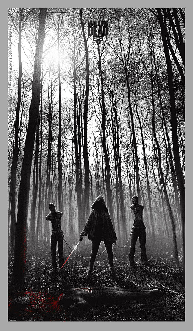 Continuing an ongoing trend, AMC has allowed a small gallery to host an official art exhibit to celebrate the premiere of the latest season. So, on Friday October 11, the Hero Complex Gallery in Los Angeles will host a show full of art based on AMC's The Walking Dead. We're proud to exclusively reveal the first wave or art. Pieces below include work by JC Richard, Paul Shipper, Cuyler Smith, JJ Harrison, Evanimal and others. Check it out below.