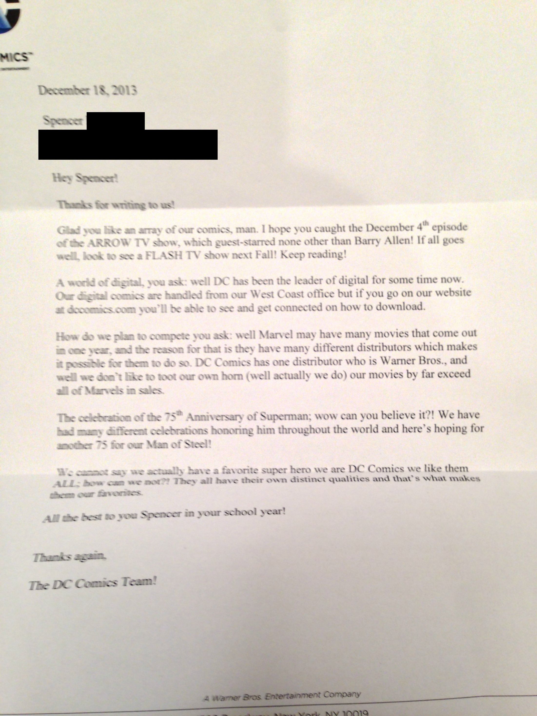 DC Comics Tells 7th Grader Its Movies Sell More Than Marvel's