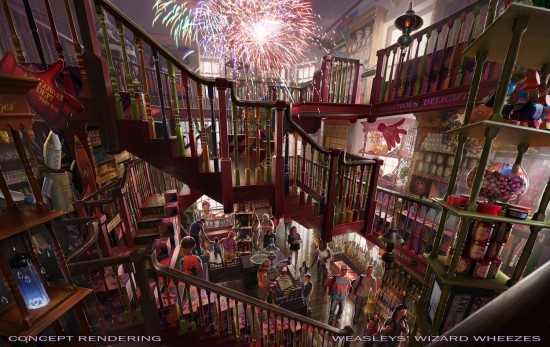 That expansion, modeled after the Potter area Diagon Alley, is set to open over this Summer and earlier this week, they announced a bunch of specific details about it. The most exciting one is the name of the area's signature thrill ride Harry Potter and the Escape from Gringotts, as well as huge list of stores that will be in the area including The Leaky Cauldron, Florean Fortescue's Ice-Cream Parlour, Weasleys' Wizard Wheezes, Madam Malkin's Robes for All Occasions, Magical Menagerie, Wiseacre's Wizarding Equipment, Quality Quidditch Supplies, Knockturn Alley, and Borgin and Burkes just to name a few. And there will also be a Hogwarts Express riding around.