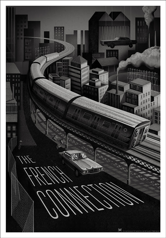 The phrase "When it rains, it pours" applies to Mondo posters Wednesday. After a cavalcade of great work by Ken Taylor for their Austin-based gallery, Mondo revealed two out-of-left-field posters that'll go on sale Thursday May 29. There's the Oscar-winning thriller The French Connection by Adam Simpson and the sci-fi masterpiece The Matrix made by Kevin Tong. Check out both posters below.